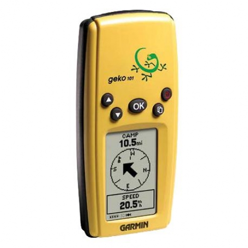 Портативный GPS навигатор Geko 101. Краткие характеристики: водонепроницаемый корпус, монохромный LCD дисплей, кнопки управления, функция расчета маршрута, путевой компьютер, функция Track-Back.